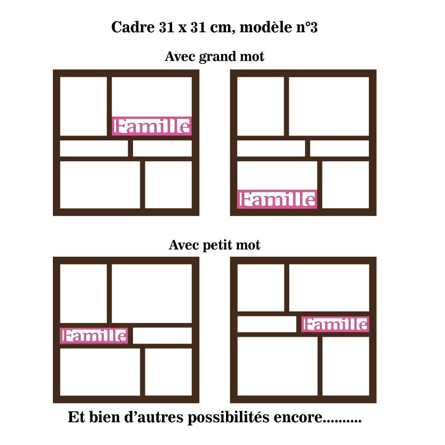 Cadre en bois 31 X 31 cm composé de 2 parties à personnaliser.Vous pouvez composer vous-même votre cadre avec ou sans mot, petit ou grand format