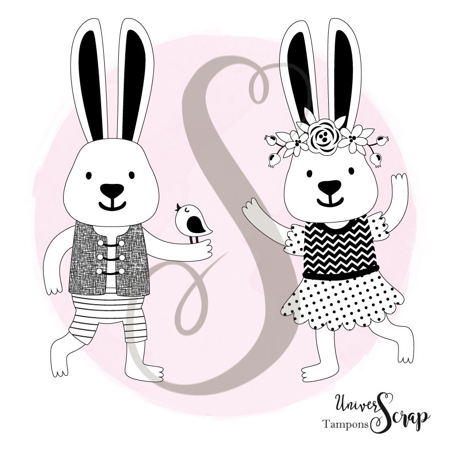 Tampon en caoutchouc monté sur mousse, s'utilise avec bloc acrylique.Dimension du Tampon Mr Lapin : Largeur 3 cm et 6,5 cm Hauteur.Dimension du Tampon Mme Lapin : Largeur 3,10 cm et 6,5 cm Hauteur.